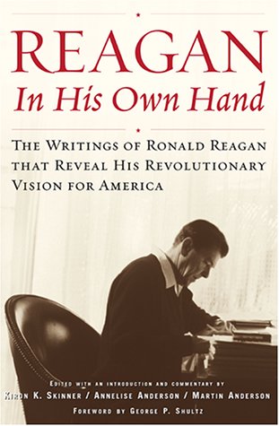 Until Alzheimer's disease wreaked its gradual destruction, Ronald Reagan was an inveterate writer. He wrote not only letters, short fiction, poetry, and sports stories, but speeches, newspaper articles, and radio commentary on public policy issues, both foreign and domestic. Most of Reagan's original writings are pre-presidential. From 1975 to 1979 he gave more than 1,000 daily radio broadcasts, two-thirds of which he wrote himself. They cover every topic imaginable: from labor policy to the nature of communism, from World War II to the second Strategic Arms Limitation Treaty, from the future of Africa and East Asia to that of the United States and the world. They range from highly specific arguments to grand philosophy to personal stories. Even those who knew him best were largely unaware of Reagan's output. George Shultz, as he explains in the Foreword, was surprised when he first saw the manuscripts, but on reflection he really was not surprised at all. Here is definitive proof that Ronald Reagan was far more than a Great Communicator of other people's ideas. He was very much the author of his own ideas, with a single vision that he pursued relentlessly at home and abroad. Reagan, In His Own Hand presents this vision through Reagan's radio writings as well as other writings selected from throughout his life: short stories written in high school and college, a poem from his high school yearbook, newspaper articles, letters, and speeches both before and during the presidency. It offers many surprises, beginning with the fact that Reagan's writings exist in such size and breadth at all. While he was writing batches and batches of radioaddresses, Reagan was also traveling the country, collaborating on a newspaper column, giving hundreds of speeches, and planning his 1980 campaign. Yet the wide reading and deep research self-evident here suggest a mind constantly at work. The selections are reproduced with Reagan's own edits, offering a unique window into his thought processes. These writings show that Reagan had carefully considered nearly every issue he would face as president. When he fired the striking air-traffic controllers, many thought that he was simply seizing an unexpected opportunity to strike a blow at organized labor. In fact, as he wrote in the '70s, he was opposed to public-sector unions using strikes. There has been much debate as to whether he deserves credit for the end of the cold war; here, in a 1980 campaign speech draft, he lays out a detailed vision of the grand strategy that he would pursue in order to encourage the Soviet system to collapse of its own weight, completely consistent with the policies of his presidency. Furthermore, in 1984, Reagan drafted comments he would make to Soviet foreign minister Andrei Gromyko at a critical meeting that would eventually lead to history's greatest reductions in armaments. Ronald Reagan's writings will change his reputation even among some of his closest allies and friends. Here, in his own hand, Reagan the thinker is finally fully revealed.From reader reviews: